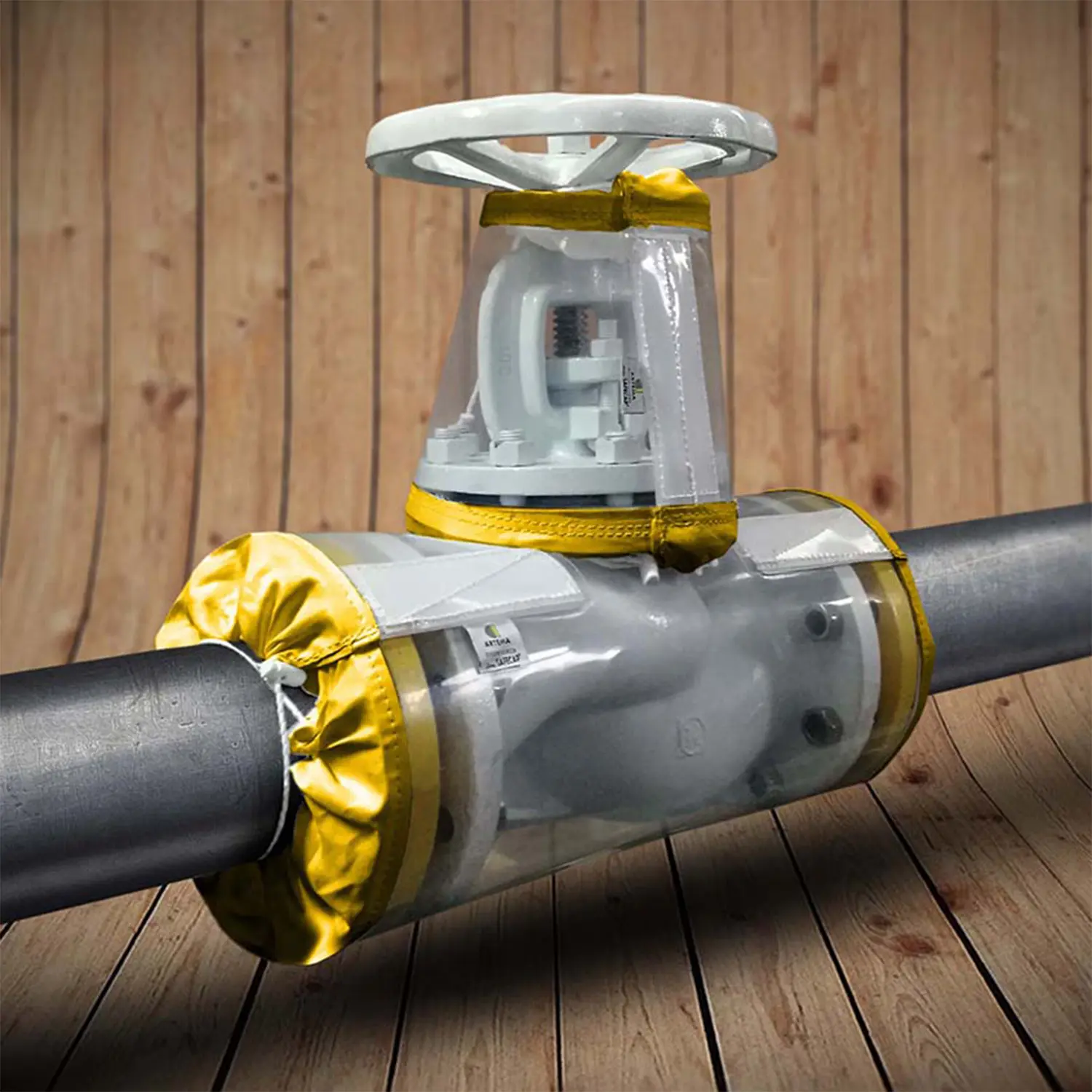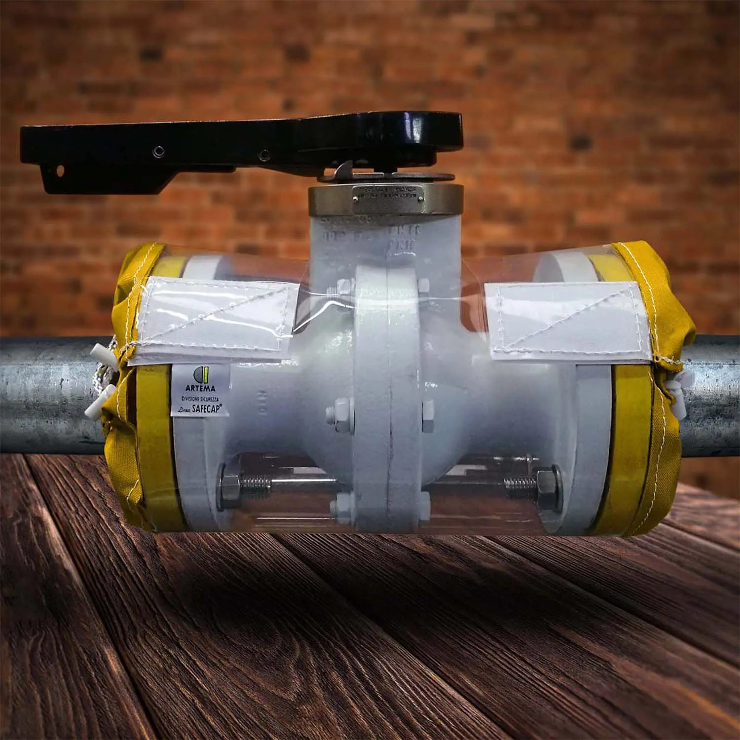 Cubreválvula de seguridad en 100% tejido de poliéster. Para las líneas de proceso en la industria química.